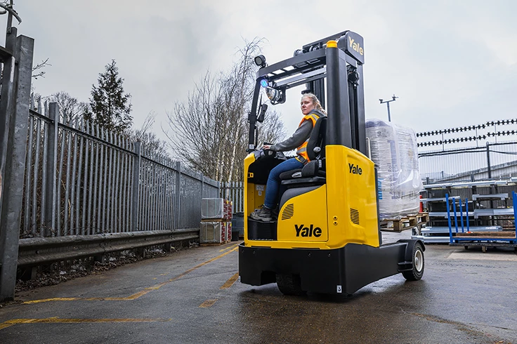 The Yale® Outdoor Reach Truck has been designed to enable operators to transition from indoor to outdoor duties on one truck. In a time-pressured warehouse environment, making the operator’s movements on and off the truck quick and easy helps support efficiency, especially when it happens multiple times per day.