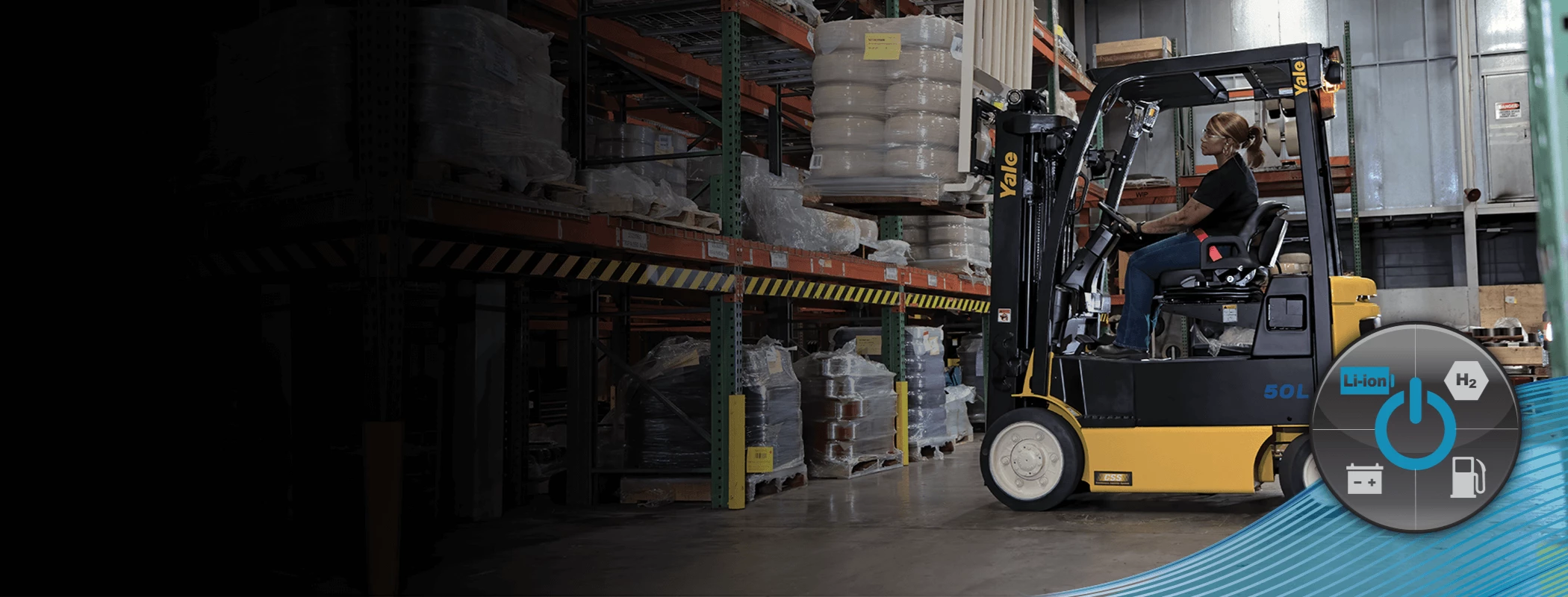 Yale offers a robust lineup of lithium-ion-ready electric counterbalance and warehouse lift trucks, set up from the factory to run on either traditional lead-acid batteries or lithium-ion power. Simply use the truck display or controller to change between power source and battery suppliers – no additional changes to the lift truck required.