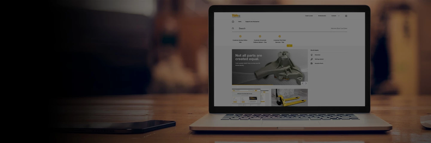 Vous recherchez des pièces détachées de chariots élévateurs ? Vous êtes au bon endroit. Si vous avez besoin de pièces détachées Yale, rien de plus simple : demandez un compte vous permettant d'accéder au portail des pièces détachées Yale®. Les concessionnaires Yale pratiquent des prix compétitifs et vous livrent à domicile des pièces détachées Yale® d'origine. Par le biais du portail des pièces détachées Yale, vous passez vos commandes facilement. Il vous aide à réduire les temps d'immobilisation de vos chariots et à maintenir la productivité.