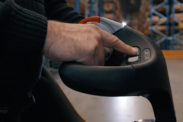 Đầu tay lái được thiết kế tiện lợi với bộ phận bảo vệ tay tích hợp và lò xo trợ lực để tay lái tự động trở vềvị trí thẳng đứng. Các công tắc điều khiển dạng cánh bướm với kích thước lớn và được trợ lực giúp dễ dàng điều khiển hướng lái, tốc độ và phanh điện từ.